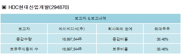 [ET투자뉴스][HDC현대산업개발 지분 변동] 에이치디씨(주) 외 8명 38.46%p 증가, 38.46%