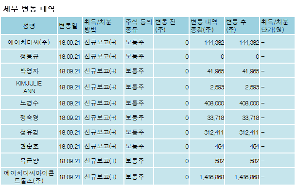 다음은 HDC현대산업개발의 지분 변동 내역과 보유 내역이다.
