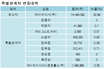 최대주주와 특수관계자의 지분 변동은 주가에 영향을 주는 요인이다. 특히 보유비율을 지속적으로 늘리거나 줄일 경우, 해당종목 투자시 유의할 필요가 있다.