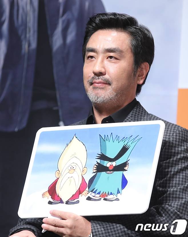 (서울=뉴스1) 권현진 기자 = 배우 류승룡이 17일 오전 서울 압구정cgv에서 열린 영화 '극한직업' 제작보고회에 참석해 묘하게 닯은 캐릭터 사진을 들고 포즈를 취하고 있다.