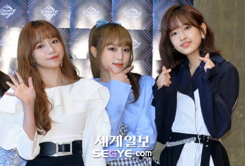 걸그룹 아이즈원 조유리, 최예나, 안유진(왼쪽부터) 15일 오후 서울 마포구 상암동 CJ E&M 센터에서 진행된 Mnet '엠카운트다운'의 드라이 카메라 리허설에 참석해 포즈를 취하고 있다.