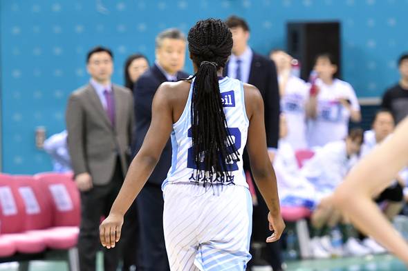 3쿼터 중반 펜이 5반칙 퇴장을 당한 후에는 김한별이 막고 동료들이 도와주는 방법으로 KEB하나은행 파커의 포스트업을 봉쇄했다. 하지만 4쿼터에 높이 열세를 절감하며 무너졌다. 파커를 외곽으로 끌어낸 후 시도하는 공격은 어느 정도 통했지만 파커의 포스트업에 트랩 디펜스로 대항하는 수비가 효과를 보지 못했다.
