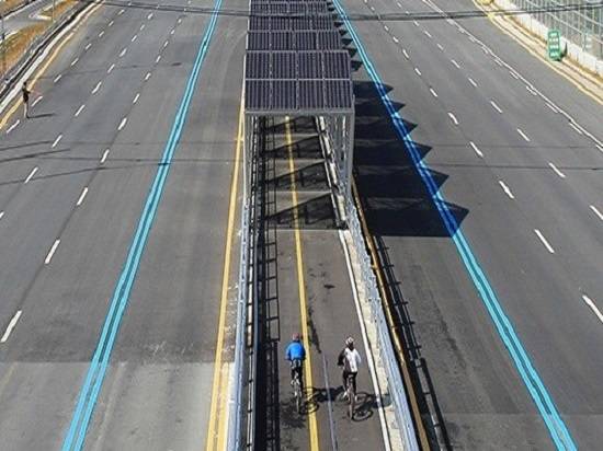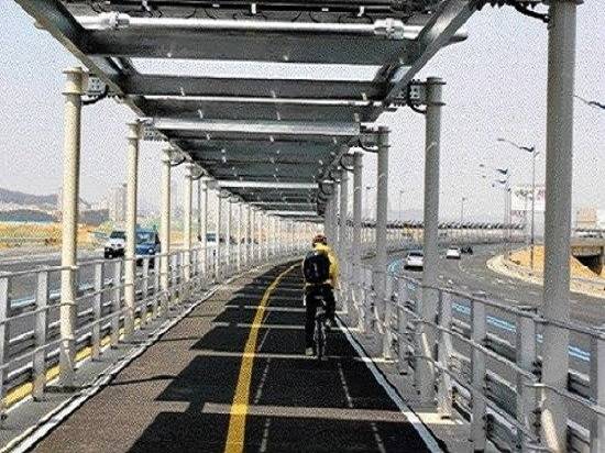 | 대전~세종 간 8차선 도로 중앙에 설치된 태양광 자전거길 |