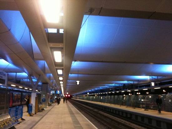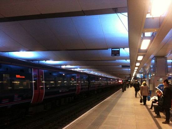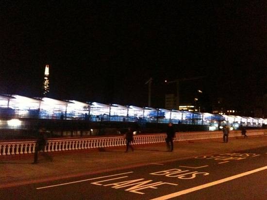 | 영국 런던 블랙프라이어스역 외부 야경과 플랫폼 내부 모습 |