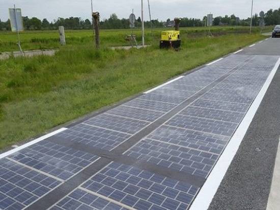 네덜란드 수도 암스테르담시의 크롬메 지역에서는 길바닥에 패널을 설치한 '세계 최초의 태양광 자전거도로'가 2014년 11월 개통됐다. 노르트홀란트주 정부와 네덜란드융합연구소(TNO) 등이 건설한 이 태양광도로는 2.5m×3.5m 크기 콘크리트 모듈에 태양광전지를 장착해 70m 길이 바닥에 줄지어 깔고, 그 위에 1cm 두께의 강화유리를 얹었다. 여기서 연간 9800kWh의 전력을 생산해 가로등과 신호등에 공급한다.