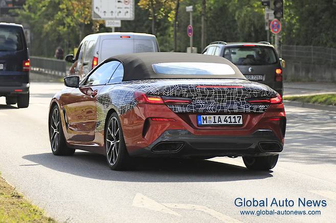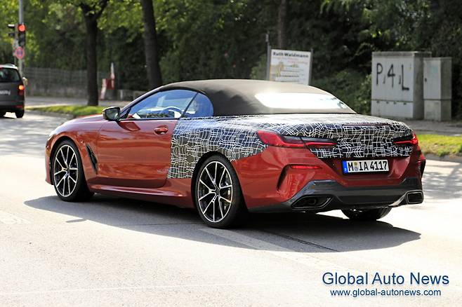 BMW 8 시리즈 쿠페와 디자인을 공유하는 8 시리즈 컨버터블이 포착됐다. 외형이 거의 동일한 만큼 전면에서의 위장은 찾아볼 수 없으며, 컨버터블 루프가 끝나는 지점을 포함한 리어에만 위장이 되어 있는 상태이다. 이 역시 형태를 쉽게 짐작할 수 있기에 큰 의미는 없지만, 정식 공개 전까지는 디테일을 숨기는 것으로 보인다.
