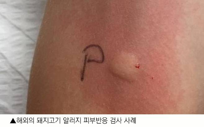 돼지고기 알레르기가 있는 최 모(31) 씨는 자신이 돼지고기 알레르기가 있다는 사실을 30세가 돼서야 알았다. 최 씨는 "계속 몸이 붓고 두드러기가 나길래 몸이 허해진 줄 알고 보약삼아 매일같이 삼겹살을 구워 먹었더니 상태가 집 밖을 나설 수 없을 정도로 악화해 알았다"고 했다.