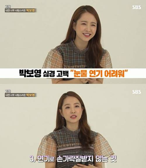 박보영은 "우는 연기가 다 똑같다고 해서 어떻게 하면 다르게 하나 싶었다"라며 자신만의 연기 고충에 대해 솔직한 심정을 털어놨다.