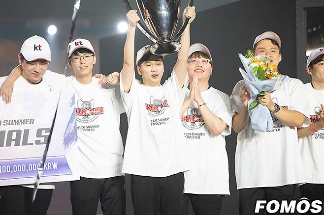 8일 인천 삼산월드체육관에서 '2018 리그 오브 레전드(LoL, 롤) 챔피언스 코리아(LCK, 롤챔스) 서머 스플릿 결승' kt 롤스터 대 그리핀의 경기가 열렸다. 이날 경기에서 kt 롤스터가 풀세트 접전 끝에 그리핀을 꺾고 단일팀 체제 첫 우승을 차지했다. '스코어' 고동빈이 우승 트로피를 들고 기뻐하고 있다.