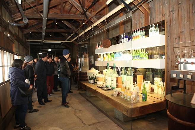 | ▲ 일본 양조장에 전시된 술병들 |