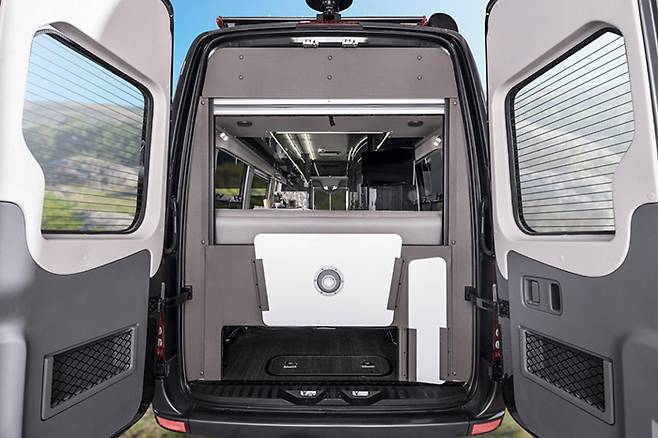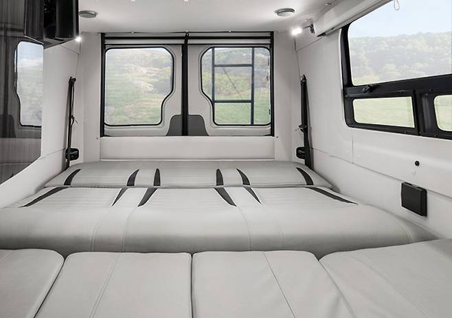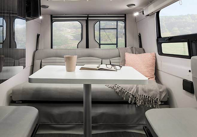 1열 시트와 2열 시트, 총 3개의 시트는 별도의 테이블을 설치해 식탁이나 대화할 수 있는 공간으로 사용이 가능하다. 에어 매트를 이용하면 취침 공간으로도 사용이 가능하다. 전면 창에는 전용 슬라이딩 방식의 블라인드가 설치되어 사생활보호 기능을 담당한다.