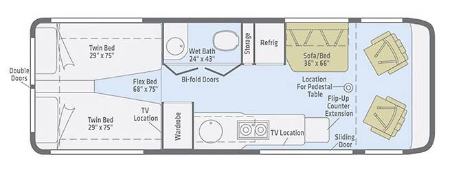 위네바고 에라 70시리즈 중에서도 70B 모델은 특화된 평면 설계를 통해 내부를 더욱 여유롭고 편안하게 사용할 수 있어 단연 인기가 높은 모터홈이다.