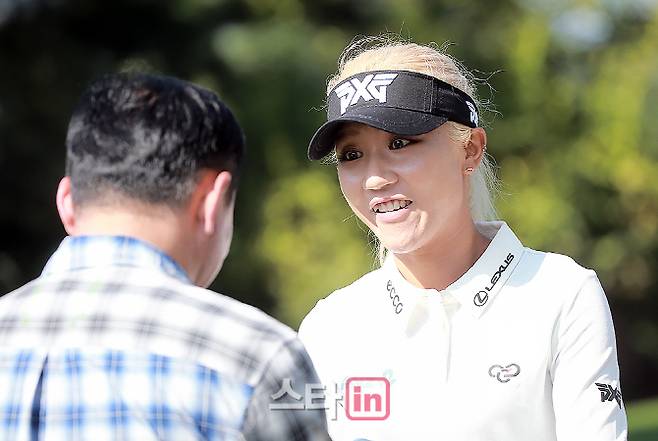 3일 경기도 여주에 위치한 블루헤런 골프클럽(파72/6,736야드 본선6,660야드)에서 2018시즌 네 번째 메이저대회인 '제19회 하이트진로 챔피언십'(총상금 8억 원, 우승상금 1억 6천만 원) 공식연습라운드가 열린 가운데,리디아 고(21.PXG)가 10번홀 티샷 전 찾아 온 팬들에게 일일이 사인을 해주고 있다.
