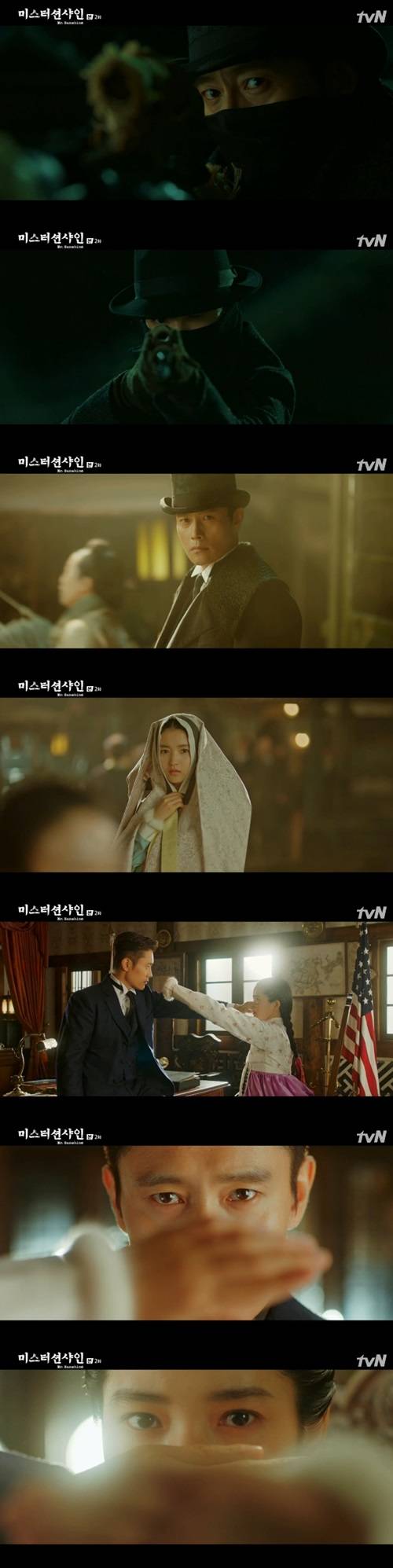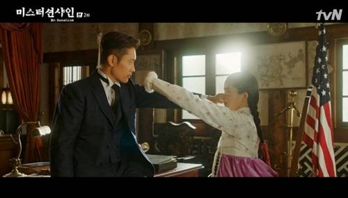 7월 8일 방송된 tvN 주말드라마 ‘미스터 션샤인’ 2회 (극본 김은숙/연출 이응복)에서는 유진 초이(이병헌 분)와 고애신(김태리 분)의 첫만남이 그려졌다.