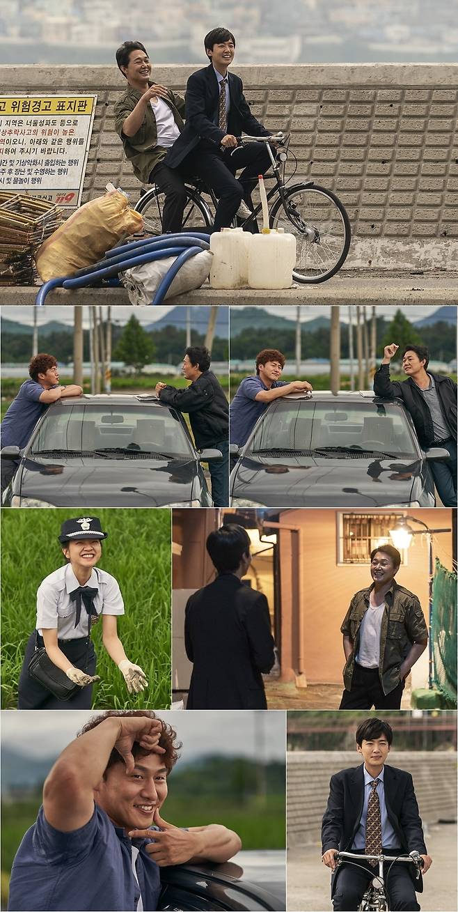 정경호와 박성웅은 현실에서도 애정이 넘친다. 정경호와 박성웅의 커플 자전거 투샷은 자체 음료 광고 BGM을 생성하는 청량함으로 웃음을 자아낸다. 장난스럽지만 미소가 떠나지 않는 정경호와 박성웅의 모습에서 남다른 케미가 묻어나온다.