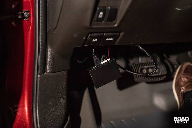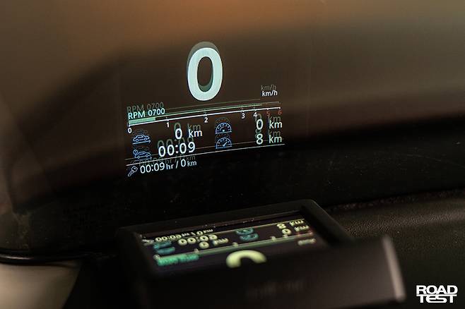 설명만 꼼꼼히 읽으면 누구나 쉽게 달 수 있다. 스티어링 휠 왼쪽 아래편 커버를 열어 OBD-Ⅱ 케이블과 전원 선을 연결하고, A필러 안쪽 내장재를 뜯어낸 뒤 전선을 감췄다. 설치하는데 15분 안팎이면 충분했다. HUD 본체는 A필러, 앞 유리가 만나는 모서리에 최대한 가깝게 달았다. 그래야 전선도 최소한만 드러나고, 전방시야도 방해하지 않는 까닭이다.