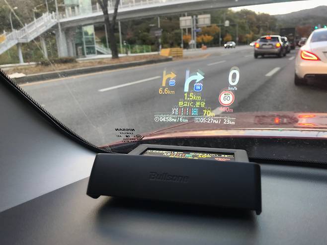실제로 애프터마켓용 HUD를 달고 체험해봤다. 대상은 2014년형 닛산 큐브. HUD와 전혀 인연이 닿지 않았던 차종이다. 게다가 앞 유리가 수직에 가깝게 곧추서 있어 정보를 또렷이 맺기에도 퍽 불리한 조건이다. 제품은 불스원 ‘스마트 HUD 프로’로 정했다. 우선 디자인이 마음에 쏙 들었고, 자동차 용품 전문기업의 실력이 궁금하기도 했다.