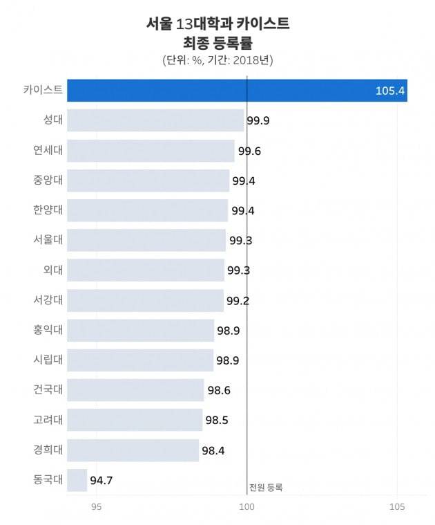 한국과학기술원이 다른 학교보다 높은 수치를 기록한 항목은 하나 더 있습니다. 바로 최종등록률이죠.