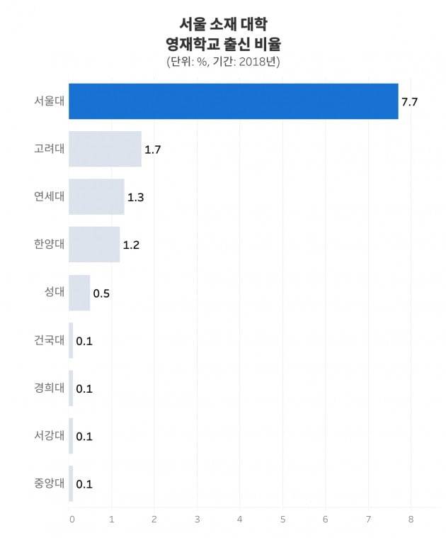 서울 시내 13개 대학에 진학하는 영재학교 학생이 꾸준히 증가하고 있습니다. 특히 서울대에 진학하는 영재학교 출신 학생의 수가 유독 많습니다. 전체 서울대 신입생 중 7.7%를 차지합니다.