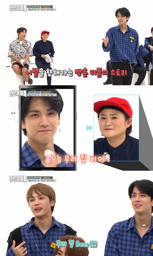 12일 오후 방송된 케이블채널 MBC every1 '주간 아이돌'에서 김신영은 예능력 테스트 '레전드 짤 만들기' 코너가 되자 영훈에게 "남친짤. 여자친구한테 영상통화 하는 느낌"이라고 설명했다.
