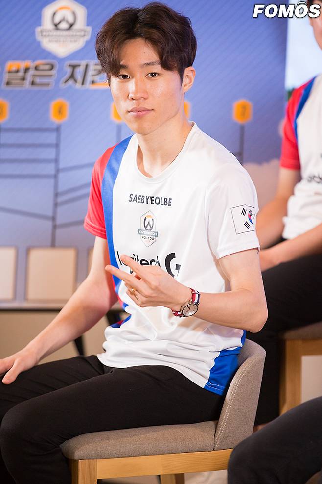 10일 블리자드 코리아에서 '오버워치 월드컵 한국 대표 토크쇼'가 진행됐다. 정소림 캐스터가 진행한 이날 방송에는 오버워치 월드컵에 출전하는 한국 대표인 '새별비' 박종렬, '리베로' 김혜성, '카르페' 이재혁, '페이트' 구판승, '메코' 김태홍, '아크' 홍연준, '쪼낙' 방성현이 참여했다. '새별비' 박종렬이 포즈를 취하고 있다.