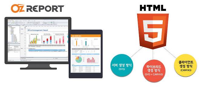 오즈리포트는 액티브엑스 제거에 적극 대응하며 어떤 브라우저나 운용체계(OS)에서도 동일하게 보고서 출력이 가능하다. 국내 리포팅툴 중 유일하게 보고서 서버 생성방식과 클라이언트 생성방식, 하이브리드 생성방식을 모두 지원하는 HTML5 리포팅 기술이 적용됐다.