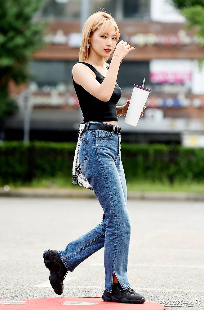 [엑스포츠뉴스 박지영 기자] 27일 오전 서울 여의도동 KBS 신관 공개홀에서 진행되는 KBS 2TV '뮤직뱅크' 리허설에 참석한 그룹 카드 전소민이 출근길에 포즈를 취하고 있다.