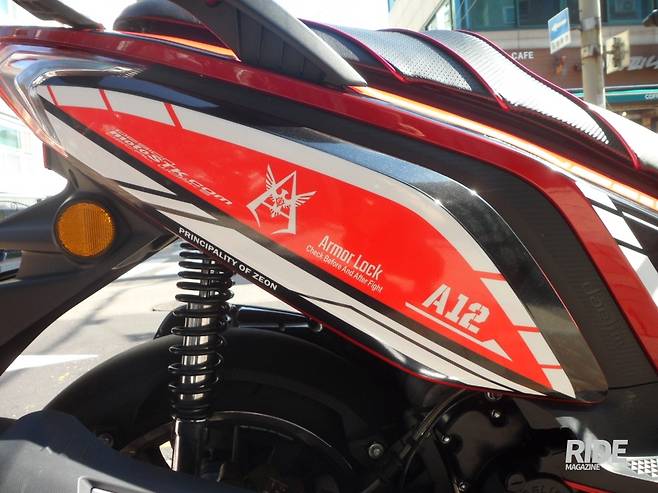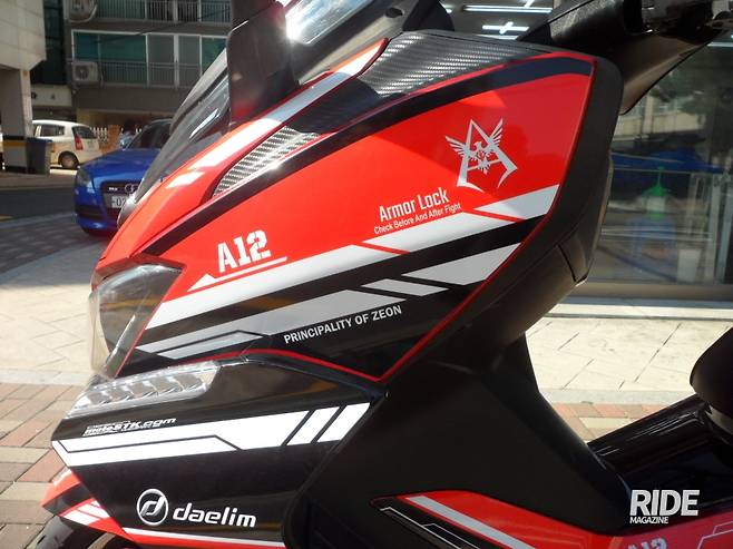 이번에 진행된 XQ250의 데칼 작업은 빨간색 바디에 어울리는 디자인으로 애니메이션 건담에서 디자인 모티브를 가져와 작업한 것으로 XQ250의 디자인 요소와 매우 잘 어울린다. 작업 결과물을 자세히 살펴보면 각진 곳까지 매우 디테일하고 꼼꼼하게 작업했음을 확인할 수 있었고 깔끔하게 위치한 대림 로고 등에서 전문가의 손길을 느낄 수 있었다. 이번 XQ250 데칼 튜닝 결과물은 KSRC의 전시무대에도 전시가 되고 시승용 차량으로도 활용되어 많은 사람들에게 노출이 되었는데 실제로 XQ250을 타고 있는 라이더들 사이에서 작업기간이나 비용 등 작업과 관련된 다양한 질문이 많았다는 후문이다.