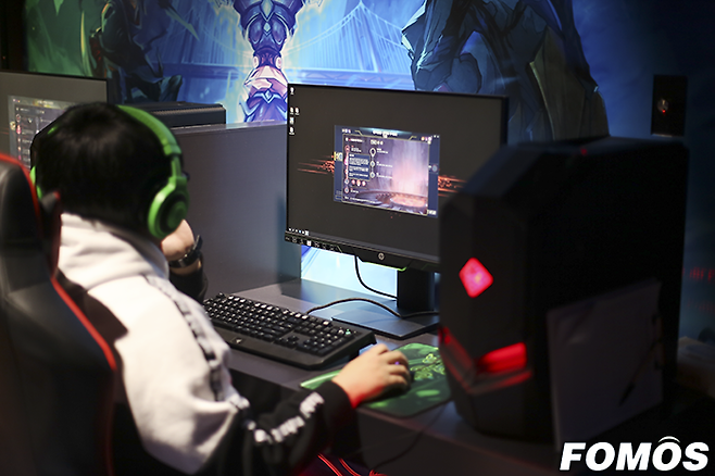 고성능 게이밍 PC 체험을 하고 있는 참가자