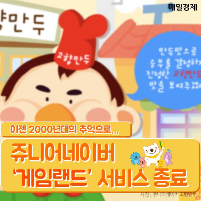90년대생들이 어린 시절 즐겨하던 쥬니어네이버의 '게임랜드'가 내년 2월 28일 서비스를 종료할 예정이다. 게임랜드는 네이버의 어린이 페이지 쥬니어네이버에서 제공한 게임 서비스로 '고향만두 만들기', ‘슈의 라면가게’ 등의 PC게임을 통해 큰 사랑을 받았다.