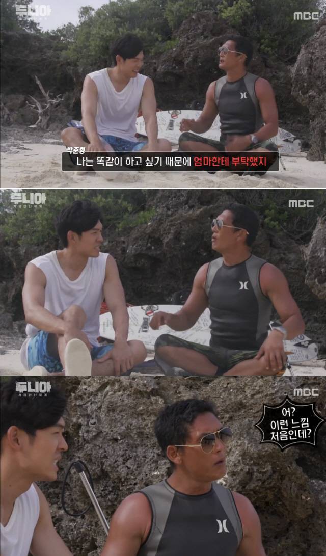 12일 방송된 MBC '두니아-처음 만난 세계'에서는 박준형이 오스틴 강에게 주사에 관한 이야기를 하는 모습이 그려졌다.