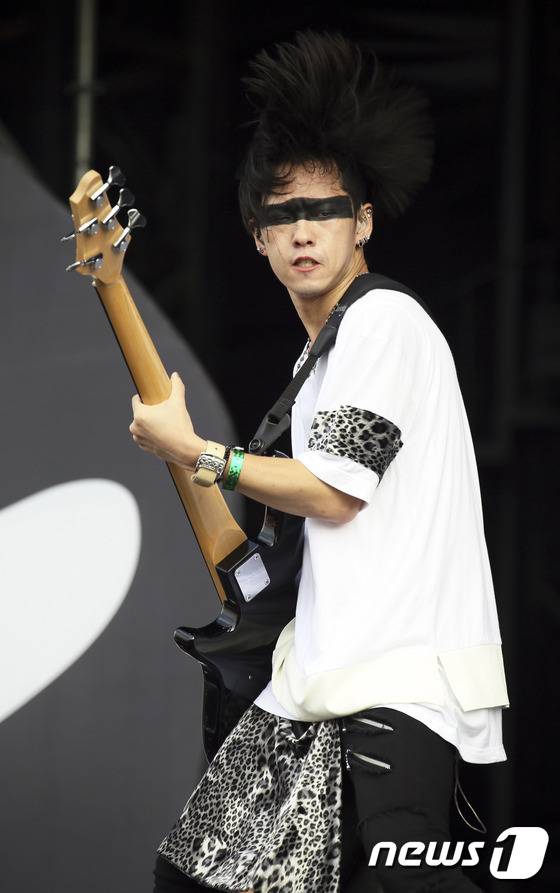 지난 14일 오후 인천 송도 달빛축제공원에서 열린 ‘인천 펜타포트 락 페스티벌’에서 '사무라이 하트(Some Like It Hot!!)'로 유명한 일본의 4인조 록밴드 스파이에어(Spyair)의 베이시스트 모미켄이 격정적인 공연을 펼치고 있다. 지난 12일부터 14일까지 3일간 열린 이번 공연에는 국내외 80여개 유수 락 그룹들이 참여해 열정적인 무대를 선보였다. (인천시 제공) 2016.8.15/뉴스1