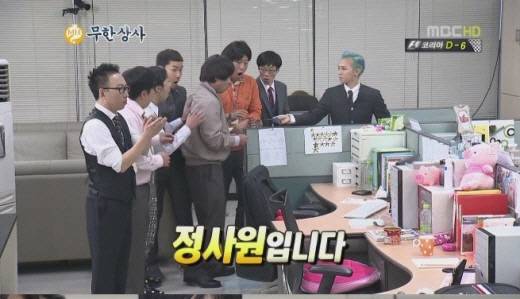 2012년 9월에는 무한상사 지드래곤이 회장 아들의 정체를 숨긴 인턴사원으로 출연해 또 한 번 화제를 모았다. 정형돈이 사사건건 트집을 잡고 텃새를 부리는 진상 선배로 열연, 지드래곤과 코믹 콤비로 활약했다.지드래곤은 화려한 패션 때문에 정형돈의 지적을 받은 뒤 더벅머리 가발과 촌스러운 의상을 소화하며 웃음을 안겼다. 이후에도 속옷 패션쇼를 벌이는 등 몸을 사리지 않는 코믹 열연으로 강렬한 인상을 남겼다.