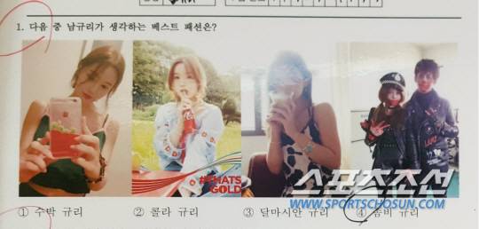1번 문제. 남규리가 본인의 SNS올린 문제 중 베스트 패션을 뽑는 문제였습니다. 정답은 바로 4번 좀비 규리. 남규리는 좀비 분장을 했던 촬영 당시의 분위기와 추억이 생각나 4번을 정답으로 뽑았습니다. 남규리는 원래 좀비물을 좋아한다면 수많은 좀비 작품을 줄줄 꿰기도 했습니다.