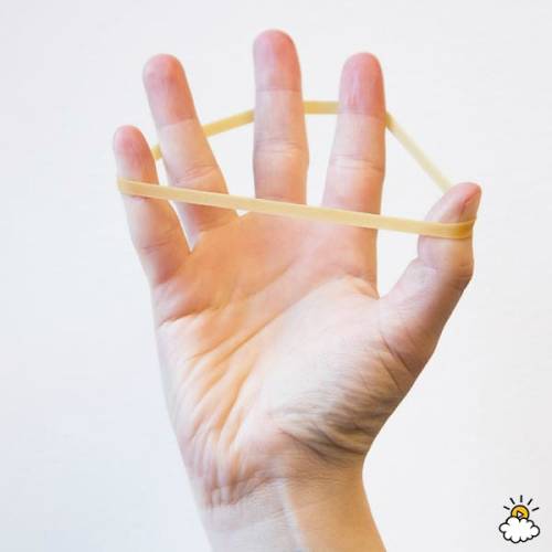 고무밴드는 손가락 힘을 강화하기 위한 좋은 운동기구다. 손가락 모두에 고무밴드를 끼우고 오므렸다 폈다를 반복한다. 밴드의 저항을 이용해 손가락 근육을 키울 수 있는 동작이다.
