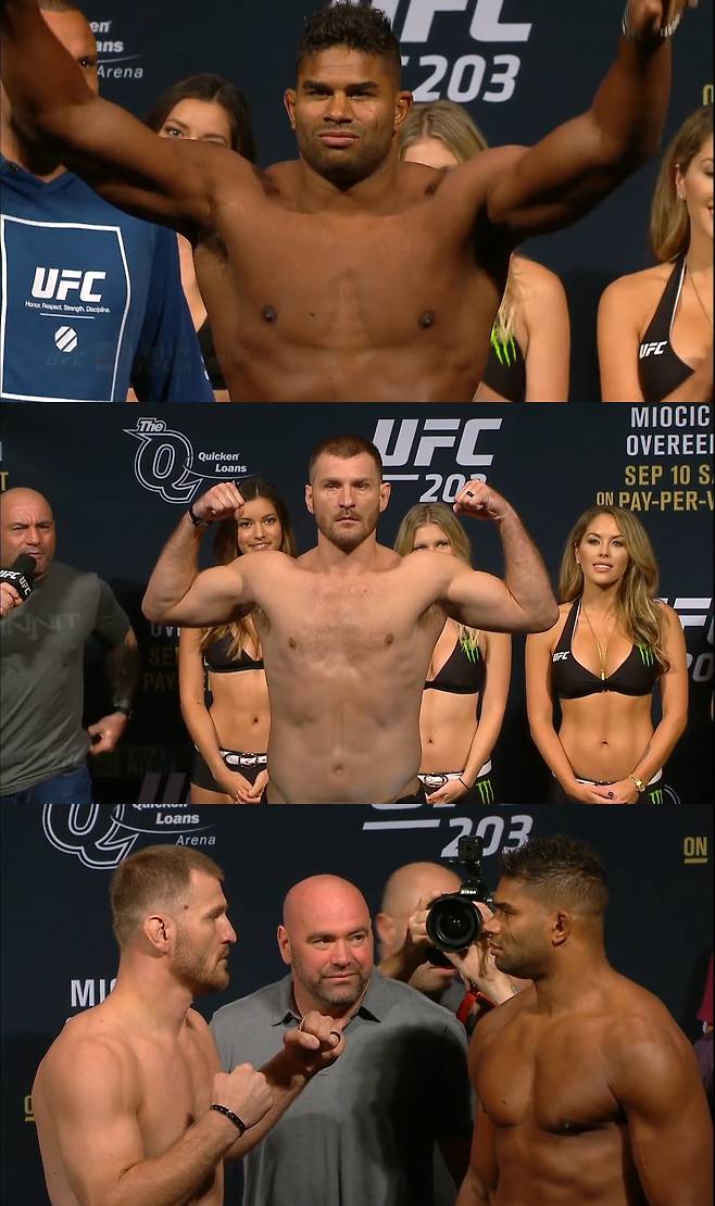 소원을 이뤘다. 11일(이하 한국 시간) 클리블랜드 퀴큰 론즈 아레나에서 펼쳐지는 UFC 203 메인이벤트에서 도전자 알리스타 오브레임(36, 네덜란드)을 상대로 타이틀 1차 방어전에 나선다. 미오치치는 10일 퀴큰 론즈 아레나에서 열린 UFC 203 계체 행사에서 고향팬들의 열화와 같은 환호와 함께 246파운드(111.58Kg)를 기록해 출격 채비를 마쳤다.