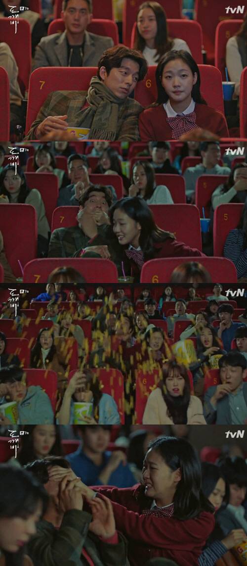 23일 밤 방송된 tvN 금토드라마 '도깨비'에서는 김신(공유)과 지은탁(김고은)의 영화관 데이트 모습이 그려졌다.