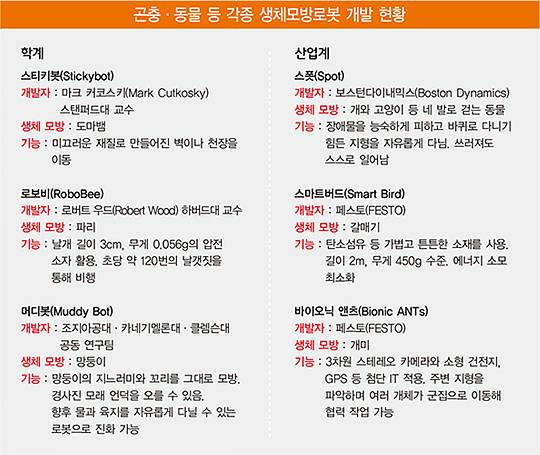 하지만 생명체의 고유한 특성은 생존 활동에 최적화됐기 때문에 기존 로봇 기술이 풀기 어려운 문제 해결의 실마리를 줄 수 있다.