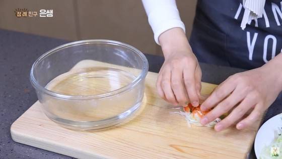 미지근한 물에 라이스페이퍼를 넣었다 뺀 후 채소들을 넣고 싸주세요.