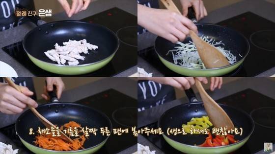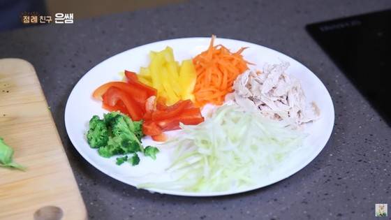 닭가슴살, 브로콜리, 당근, 파프리카, 무, 라이스페이퍼, 카놀라유
