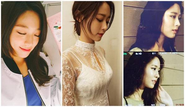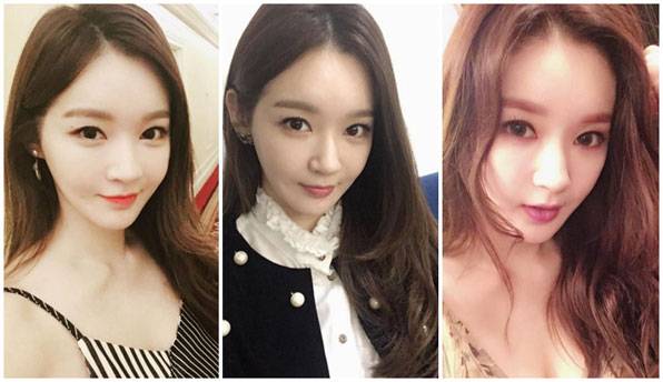 얼짱 출신이자 그룹 다비치의 강민경은 황정음과 반대로 오른쪽 얼굴을 드러내고 있다.