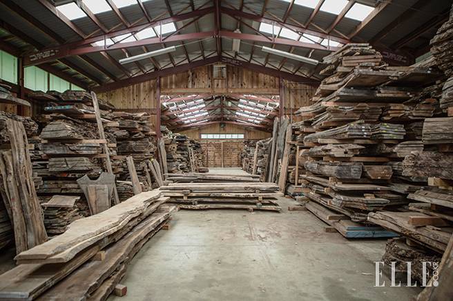 가구의 원료인 다양한 목재들을 보관하는 초대형 창고.