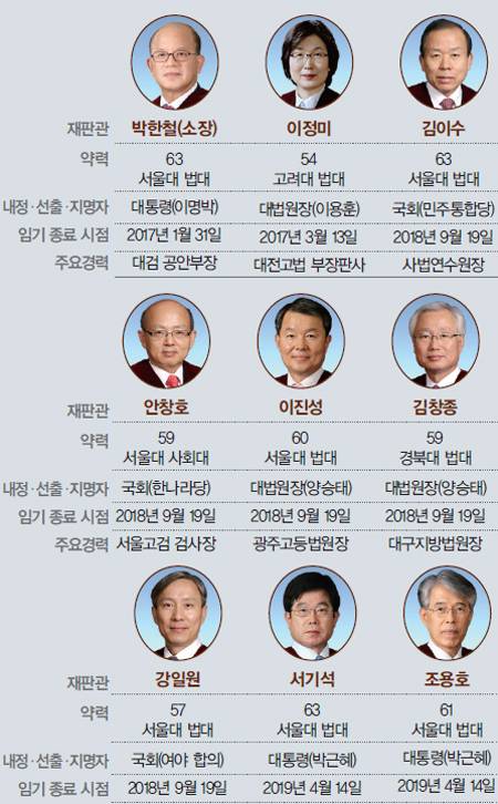박한철 소장 퇴임일이 1월 31일, 이정미 재판관 퇴임일이 3월 13일이다. 현재 상황에서 후임이 임명되기 쉽기 않은 게 사실이다. 1월을 넘기면 8명, 3월 중순부터는 7명이 남는다. 물론 헌법재판소법에 따라 재판관 7명만 있으면 심판은 가능하다. 하지만 일반사건도 아닌 탄핵사건을 7~8명이 선고하기에는 부담이 크다. 법조계 관계자는 “헌법재판은 헌법재판관 9명이 치열한 토론을 벌여 서로에게 영향을 주는 것이 원칙이다. 국가적으로 중대한 사안을 7명의 토론으로 결정하는 것은 헌재 스스로에게 적잖은 부담이 된다”고 했다. 그래서 헌재가 내년 1월 선고를 목표로 한다는 예측이 나온다. 기술적으로는 탄핵인용 수준이라는 판단이 나오면 나머지 부분 심리를 적절히 정리하고 심판을 마치는 방법이 있다.