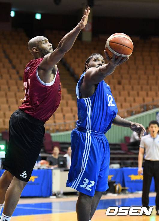 [OSEN=잠실실내체육관, 지형준 기자] 29일 오후 서울 잠실실내체육관에서 열린 프로농구 서울 삼성과 창원 LG의 연습경기, 4쿼터 삼성 그레익이 LG 에페베라의 수비를 피해 슛을 시도하고 있다. /jpnews@osen.co.kr