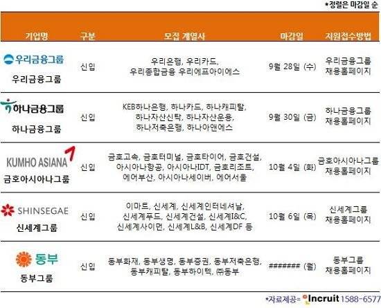하반기 신입공채 서류접수가 마무리되어 가는 가운데, 취업포털 인크루트가 아직 남아있는 주요 대기업 그룹사 채용공고를 정리해 23일 발표했다.