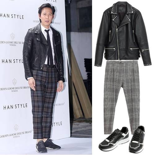 이날 그는 화이트 셔츠에 넥타이, 체크무늬 팬츠를 입고 블랙 가죽 재킷을 걸쳐 시크하면서도 자연스러운 매력을 살렸다. 여기에 가벼운 운동화를 신어 캐주얼과 포멀함을 동시에 드러냈다.