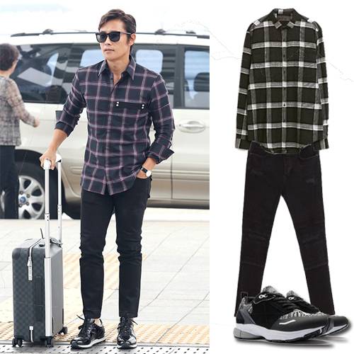 한국을 넘어 이제는 월드 스타로 거듭난 국민 배우 이병헌. 얼마 전 국제 영화제 참석 차 공항을 찾은 그는 어두운 컬러의 체크 셔츠에 블랙 팬츠, 편안한 운동화를 매치했다. 여기에 명품 트렁크로 스타일링에 포인트를 준 것.