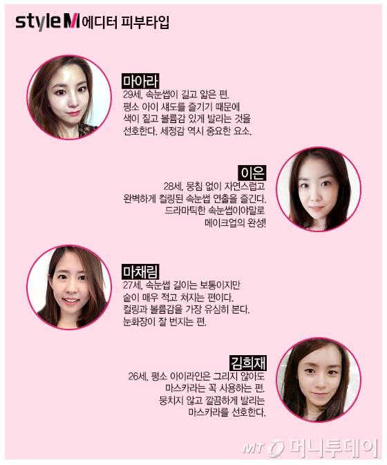 마아라=속눈썹이 길고 얇은 편이다. 평소 화려한 아이 메이크업을 즐겨 색이 짙고 볼륨감 있게 발리는 마스카라를 선호한다. 쉽고 깨끗하게 지울 수 있는 지를 꼼꼼히 따진다.