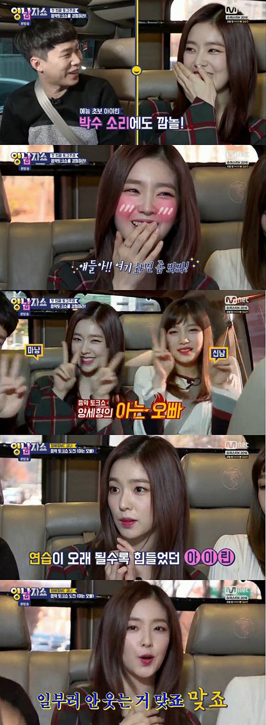8일 오후 방송된 케이블채널 엠넷 '양남자쇼'에는 레드벨벳 아이린, 웬디, 슬기, 조이 등이 게스트로 출연했다.