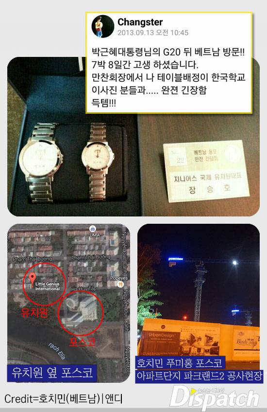 멘션 아래에는 박근혜 이름이 적힌 청와대 시계가 인증샷으로 첨부돼 있었다. 장승호와 박근혜 대통령, 단순히 한인 사업가와 모국 대통령의 형식적인 만남일까.